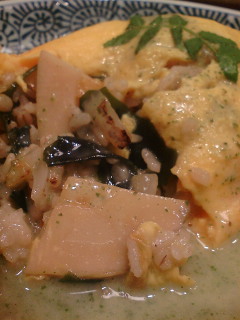 この時期が旬のおいしい京都の竹の子をたっぷり使ったオムライスです。
