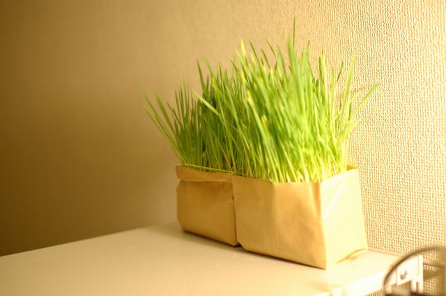 ペット禁止なので猫は飼えませんが、部屋に緑がほしかったので安い猫草を買って育ててみました。