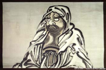 河鍋暁斎(かわなべ きょうさい、1831年(天保2年) - 1889年(明治22年)4月26日)は幕末から明治にかけて活躍した絵師。幼年期に歌川国芳に入門し、後に狩野派に移りその後絵師として独立。明治初期 に投獄されたこともあるほどの反骨精神の持ち主で、多くの戯画や風刺画を残している。狩野派の流れを受けているが、他の流派・画法も貪欲に取り入れてい る。その筆力・写生力は群を抜いており、海外でも高く評価されている。